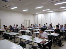 | シンポジウム会場風景 開催報告のように山梨大学、山梨学院大学、山梨県工業技術センターから地域におけるホットな話題3題をテーマに熱心に討論が行われた。 |